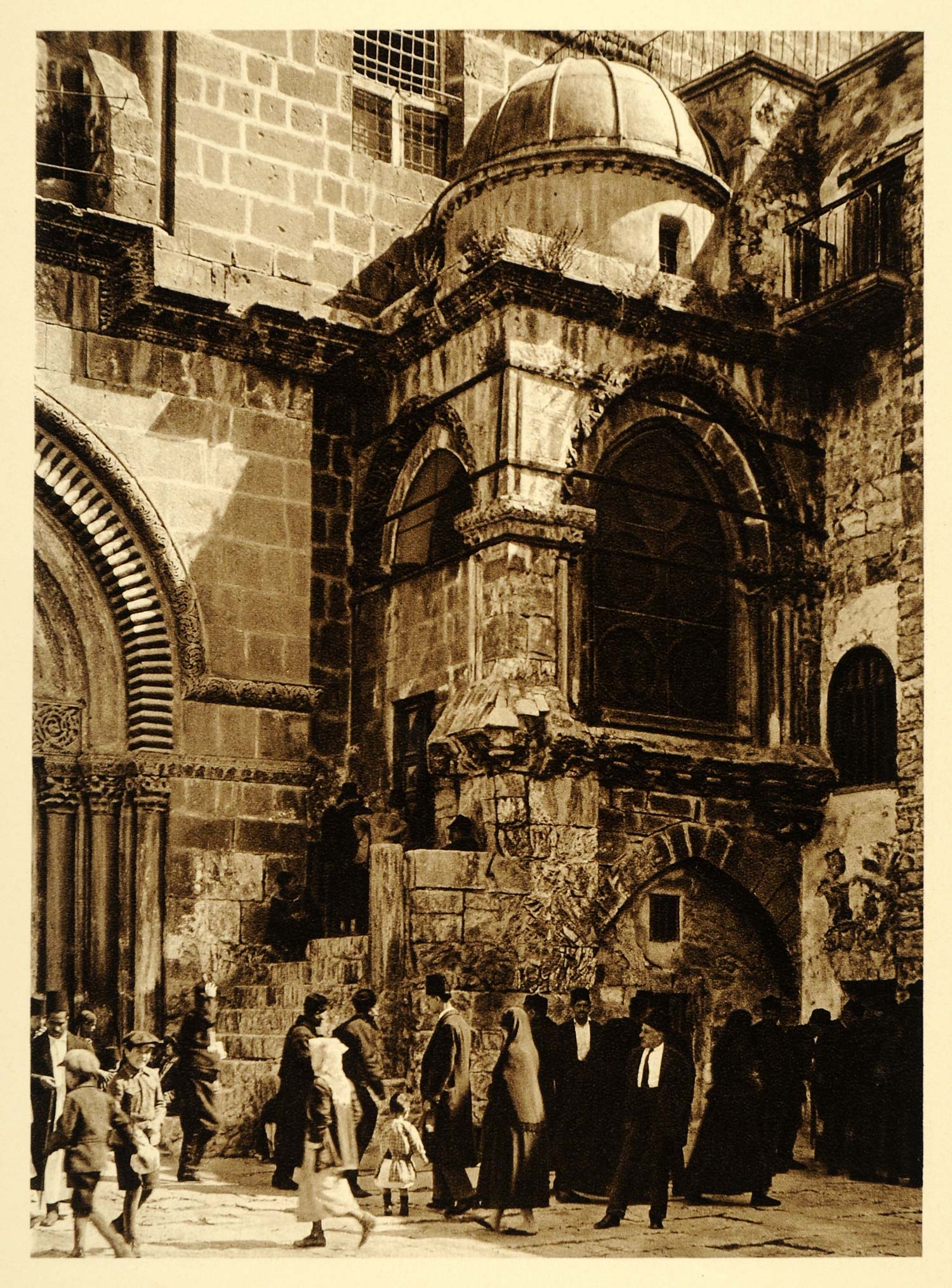 Period Paper is pleased to offer an exceptional collection of historic original photogravures of the architecture, landscape, and people of Palestine including Arabia and Syria. The actual border around the photogravure is larger than what is shown in the digital image and each image has a caption in English, French, Spanish, Italian and German, which will be included with the item when shipped. However, we wanted to show you the actual image up close and the dimensions provided next to the "Size" indicate the size of the actual photogravure only. The total size is approximately two inches larger in width and height. These original photogravures are not to be confused with the more common halftone prints. Each of these photogravures was created from an engraved plate and provides exceptional detail, contrast, warmth, and depth, making them excellent original images for framing.